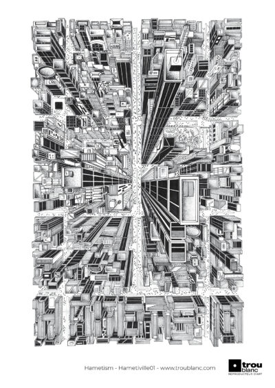 Les illustrations hurbaines d’HAMETISM aux perspectives monochromes affichent une maîtrise vertigineuse du trait.