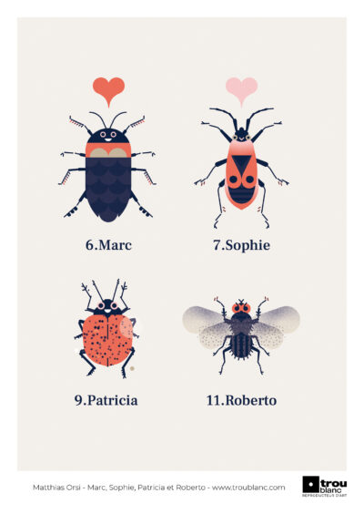 MATTHIAS ORSI développe un style à la fois naïf, coloré et plein de fantaisie. Un univers qui mêle formes géométriques simples et imaginaire luxuriant, entre onirisme et goût de l’absurde. Sa particularité ? Trouver de la poésie là où on ne l’attend pas, avec de l’imagination, il n’y a pas de mauvais sujet ;) Il aime… La sérigraphie, les plantes vertes en général, les géraniums en particulier, les chats, le 51 mais pas le Ricard, les Lego, la robot dance, tricher aux jeux de société, et trouver des hashtags rigolos pour ses créations. Il ne raffole pas… Des miettes de pain dans son verre, des impôts dans sa boîte aux lettres, des mouches qui volent…