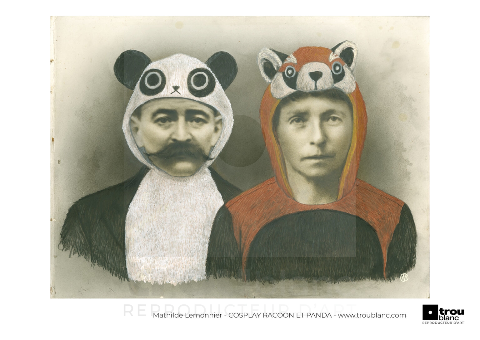 Détournement au pinceau (techniques mixtes à l’eau) sur photos de famille de 1890 à 1950 et iconographies religieuses. Cette série a débuté en 2009 après que mes parents m’aient légué le carton de photos de famille. Une fois le stock familial épuisé j’ai poursuivi le travail en glanant des photos abandonnées. Cette recherche devenue obsessionnelle, frénétique et thérapeutique se poursuit encore maintenant. Ma vie personnelle, ma vie de femme et l’actualité, ainsi que mes questionnements sur la cellule familiale et sur la religion interfèrent dans ces créations et m’ont fait réaliser plus de 800 pièces qui ont eu l’occasion d’être exposées dans différents lieux et ont fait l’objet de quelques publications presse et édition.