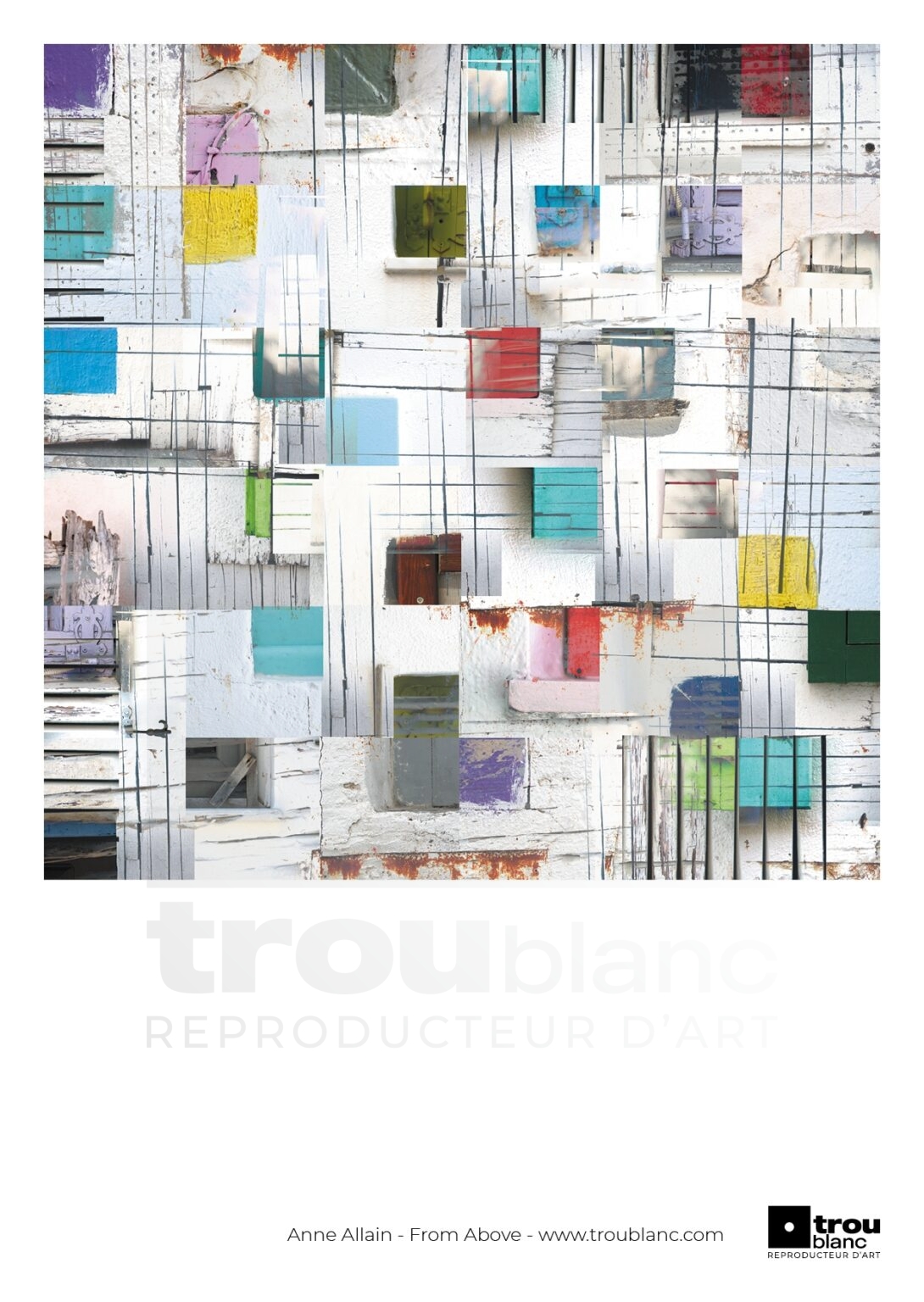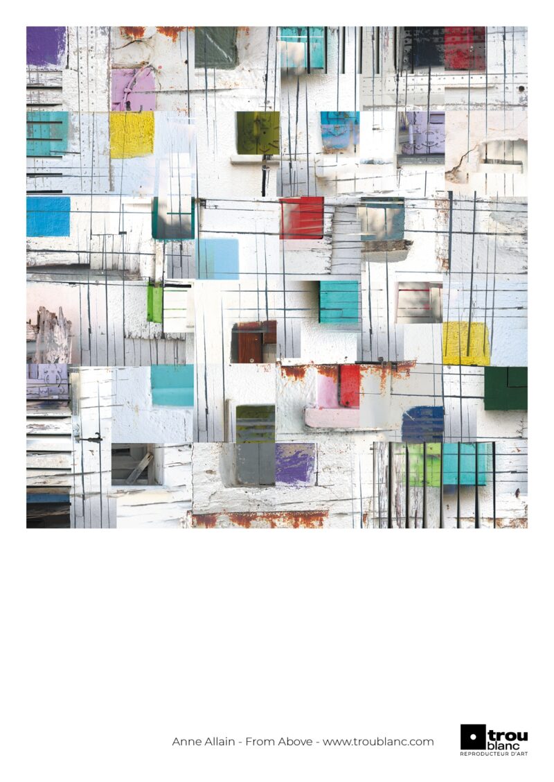 Décor imaginaire d’une ville vue du-dessus, créé à partir de fragments de photos assemblés numériquement les uns aux autres.