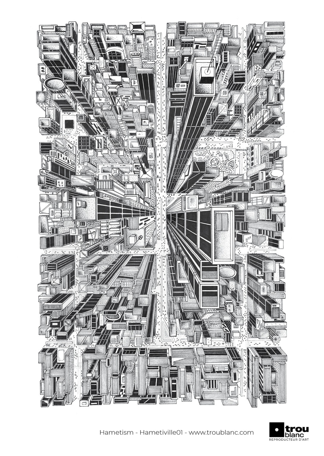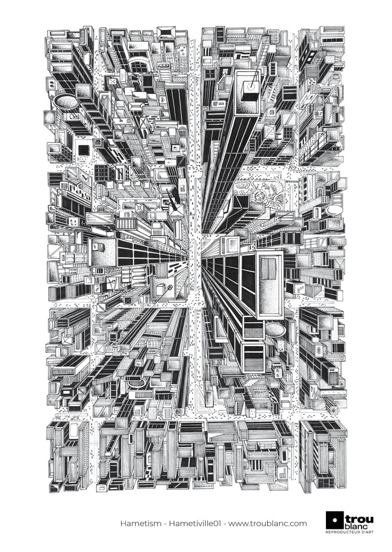 Hametiville est une ville imaginaire qui se situe dans un futur proche, elle puise son inspiration des plus grandes métropoles, la concentration de ses buildings et ses habitants.
