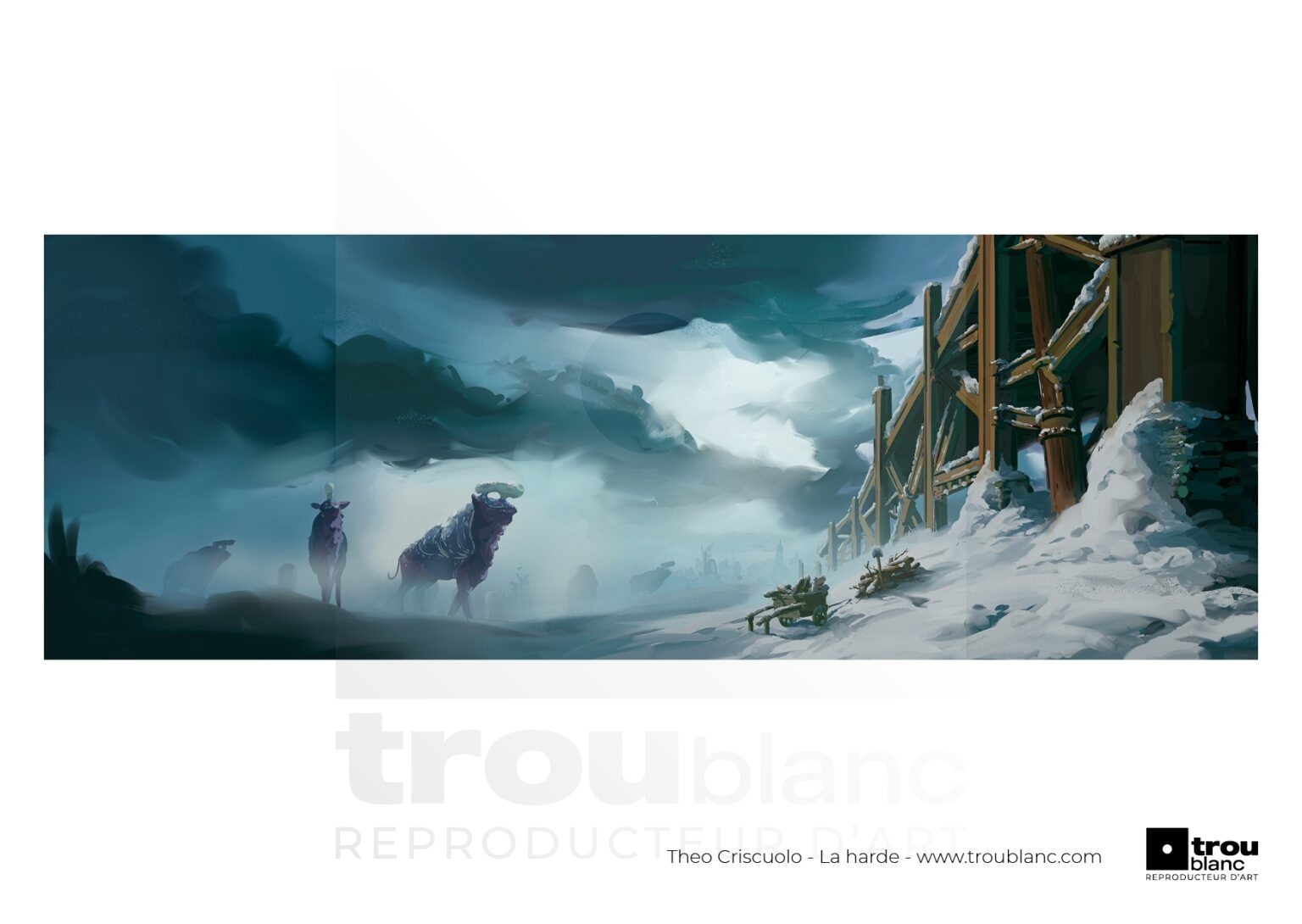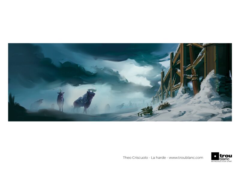 Tout l'univers de Théo Criscuolo« La harde » est un concept art tiré de mon projet de diplôme, Melancholia. J’y dépeins un monde en proie au changement à cause d’une industrialisation galopante.