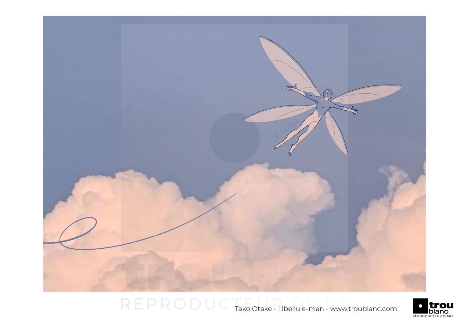 Un matin, ma mère m’a envoyé une photo de son ciel de campagne. L’envie de se blottir dans ces nuages grandissait lorsque soudain, comme une évidence, Libellule-man s’est envolé vers eux pour moi. Comme bien d’autres, il est l’un des moteurs de mes espérances depuis bien longtemps déjà.