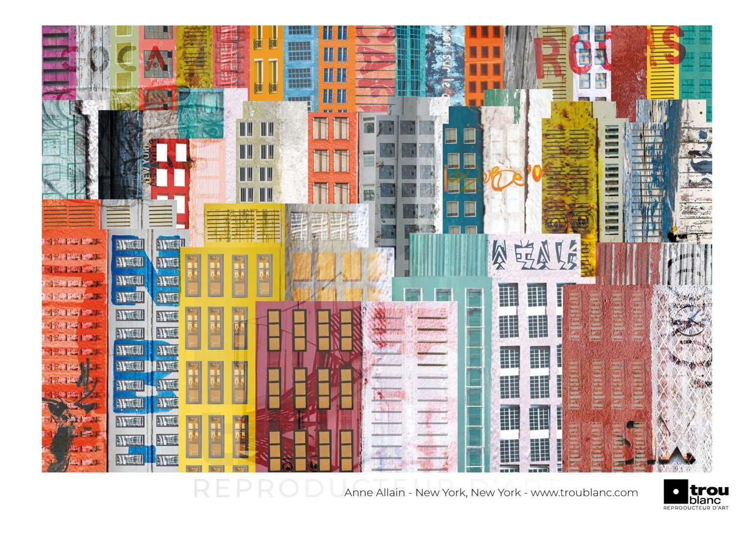 Ce skyline imaginaire, très coloré a été créé à partir de fragments de photos assemblés numériquement les uns aux autres. Influence villes américaines, New-York.