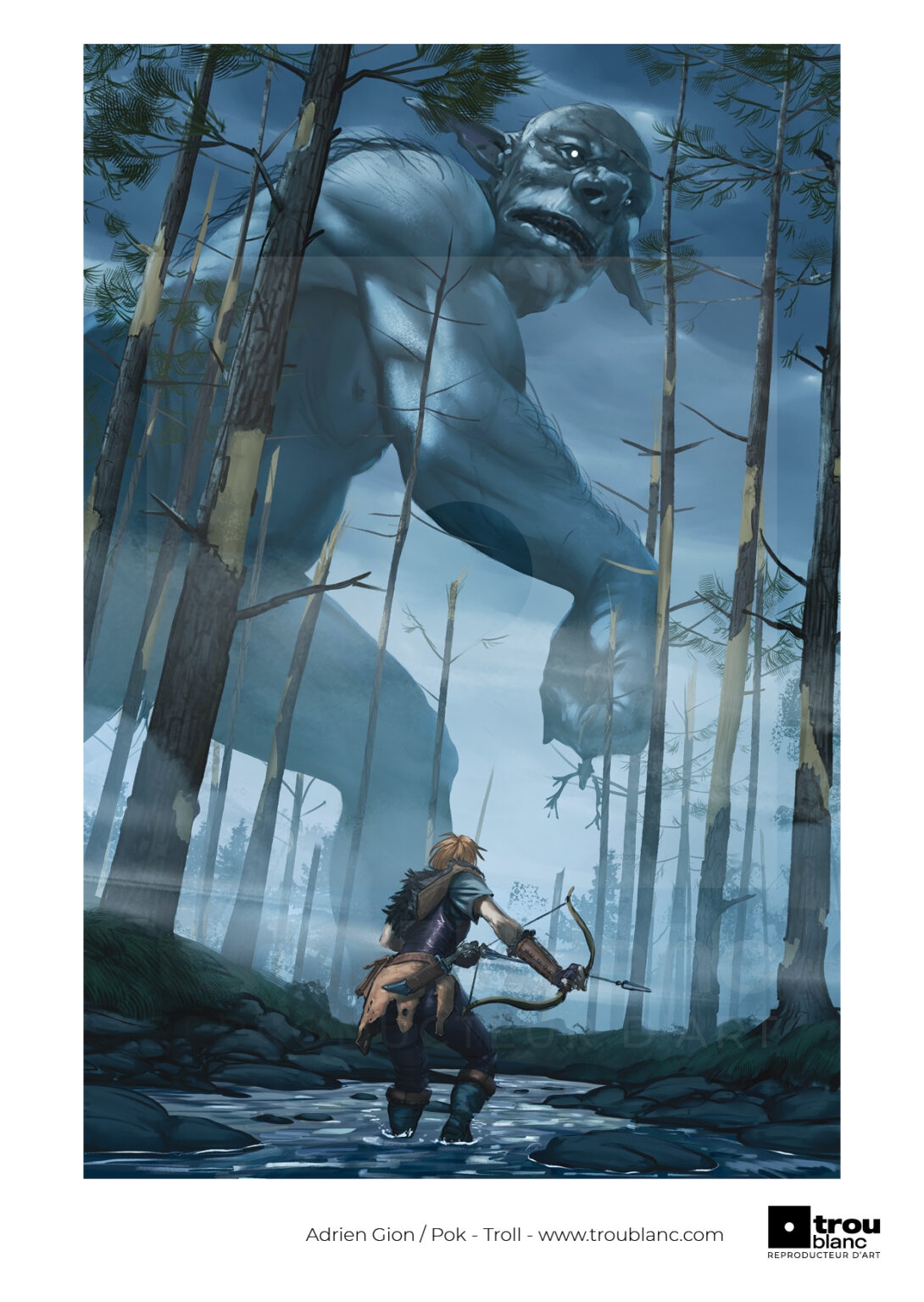 Chasse au troll, illustration numérique inspirée de sessions de jeu sur Valheim.